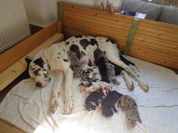 Am 16.09.2014 erblickten 10 Doggenbabys das Licht der Welt. Vater der Welpen ist, wie bei unserem A-Wurf "Puccini vom Polarstern" Hier sind die ersten Bilder von Batida und ihren Welpen. Einzelbilder folgen wenn die Welpen etwas älter sind.